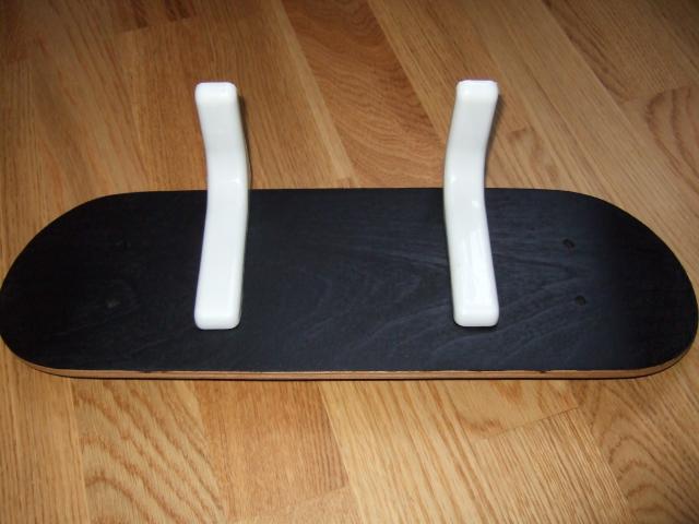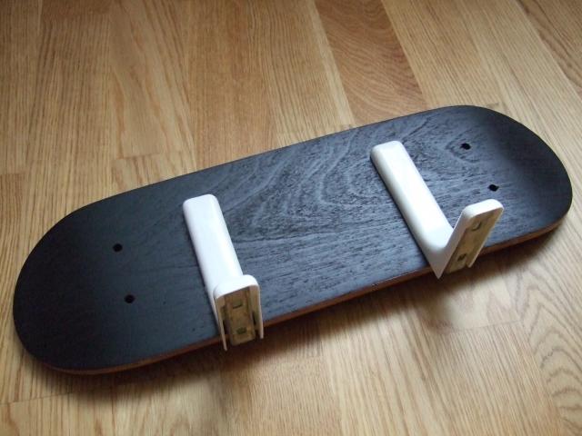 Savadarbė pakabinama lentyna is mini riedlentės, 43 x 13 cm, su baltais arba juodais laikikliais.
