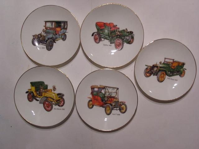 „Jiesios“ gamybos, 5 vnt. su skirtingų senovinių automobilių piešiniais, 14 cm skersmens