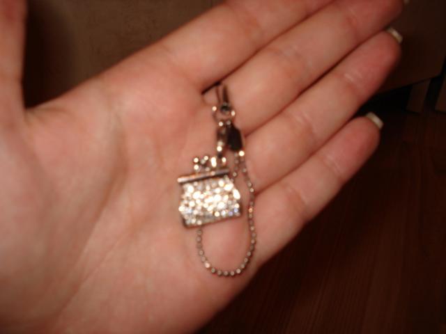 naujas telefono pakabukas - rankinukas, taciau iskritus viena akute, bet lengva pataisyti:)