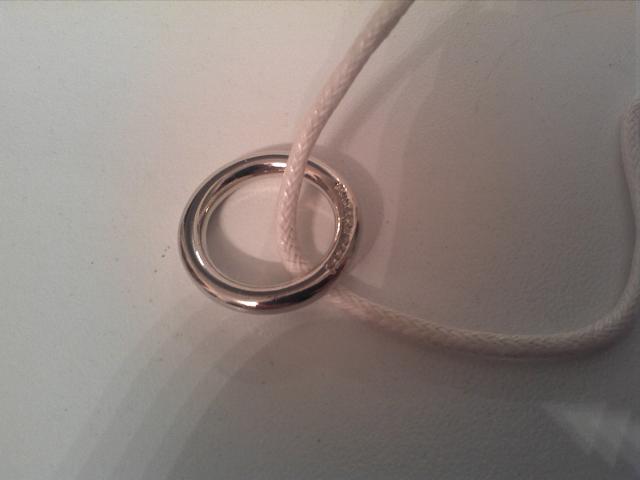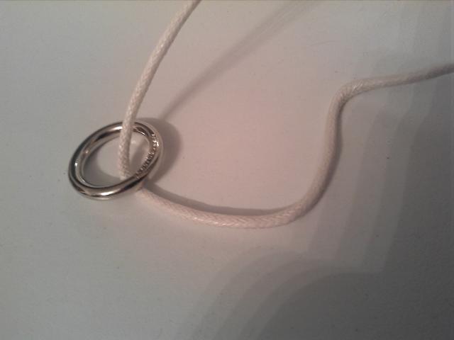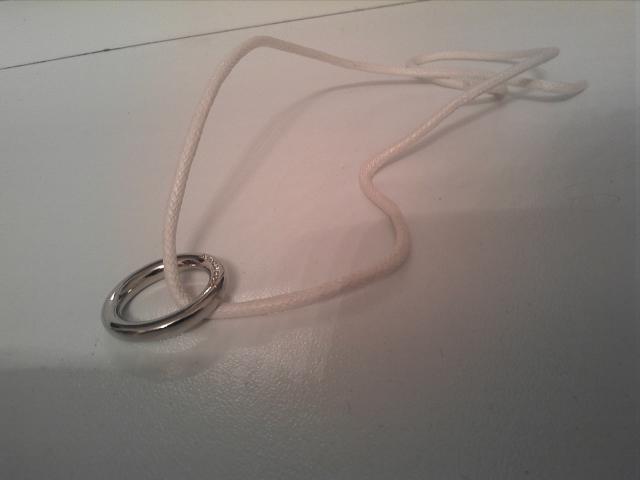 Universalus daikčiukas : ) Galima užsirišti ir naudoti kaip apyrankę arba kaklo papuošalą, taip pat lengvai galima patį žiedelį nusiimti ir naudoti kaip žiedą ant mažojo pirštelio. Naujas, be defektų. Spindintis. : )