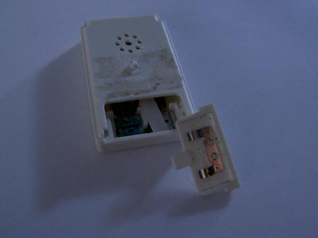 pakabukas-audioindikatorius ant raktu, pazalieve baterijos kontaktai.