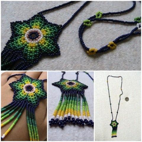 nenesiotas pakabukas, kuri parsiveziau is Meksikos. melynu-zaliu-geltonu spalvu, gan ilgas.
