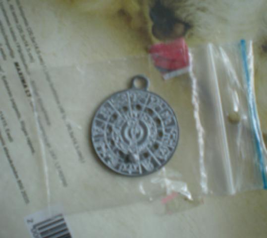 Įdomus, apvalus pakabukas su horoskopų ženkliukais :) Išsitraukia toks kamštelis ir galima jį įdėti į norimo horoskopo vietą :) Įdomus daiktelis, visai nenešiotas :)