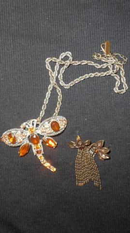 masyvus drugelio formos pakabutis ir auskarai.