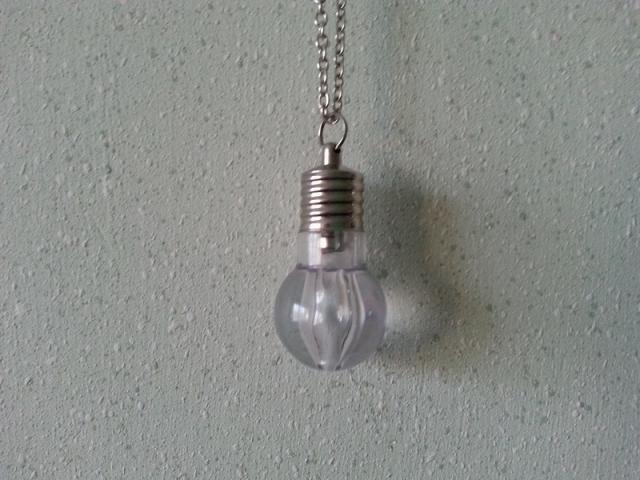 Įdomus, žaismingas pakabukas. Pasukus pakabuko lemputė šviečia. : ) Lemputė plastikinė.