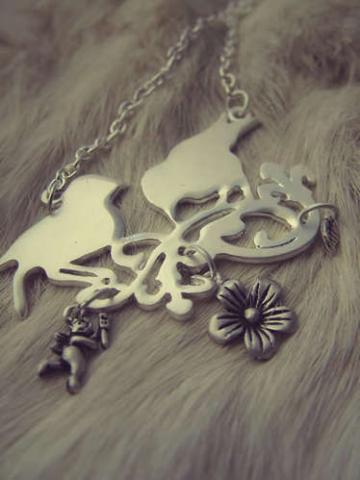 Balto matinio bižuterinio metalo pakabukas, nei karto nedėvėtas, tiesiog nepritaikiau sau :) Ornamento/paukštukų plotis 5 cm, aukštis apie 3,5 cm. grandinėlės ilgis 29 cm. nuo prikabinimo, o bendrai 54 cm.