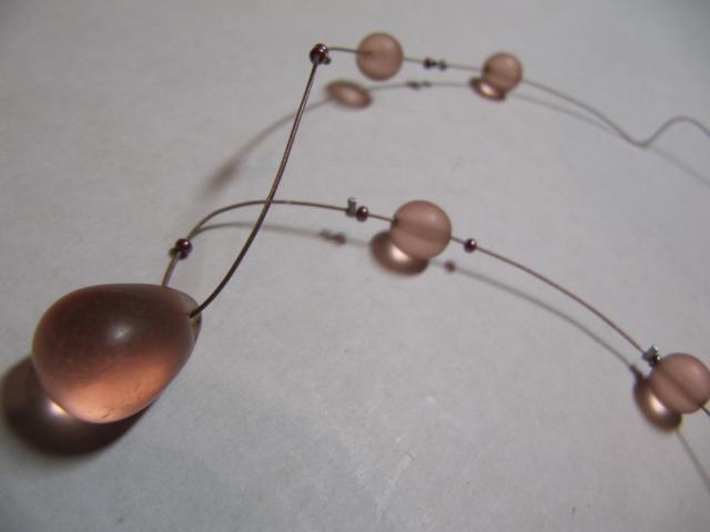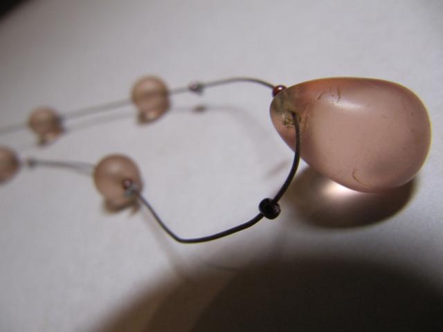 Labai lengvas ir dailus rožinės spalvos skaidraus stiklo lašelių vėrinukas.