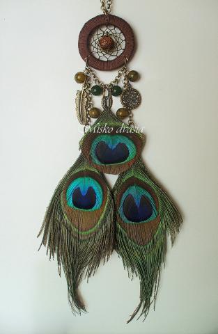 Pakabukas sapnų gaudyklė su povo plunksnom