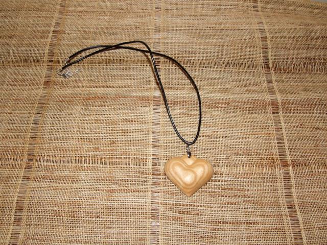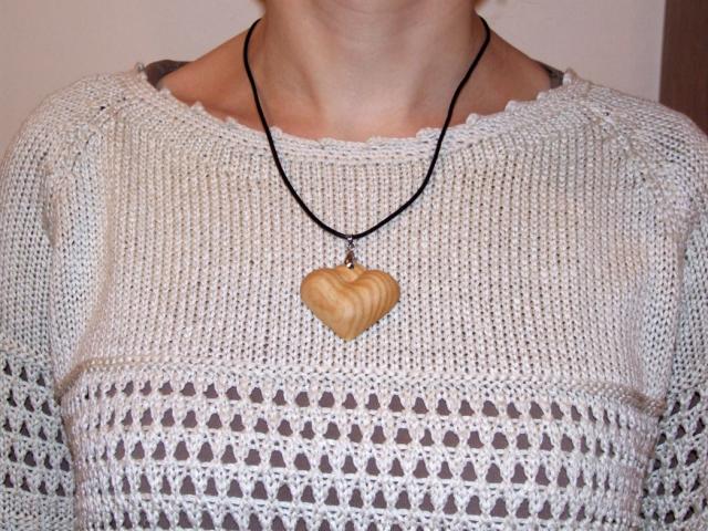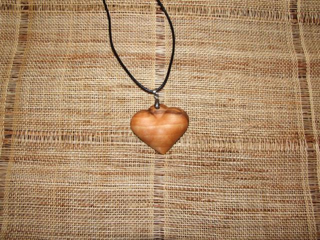 Naujas pakabukas - širdelė iš medžio, rankų darbo. Išmatavimai 4 x 4,5 cm. Virvelės ilgis - 22 cm, dar apie 5 cm galima pailginti, ilgis reguliuojamas.