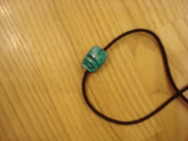 parvežtas iš egipto, tik nežinau, iš ko tokius daro, ar iš kažkokio molio, ar iš minkšto akmens. virvutės ilgį galima reguliuoti.