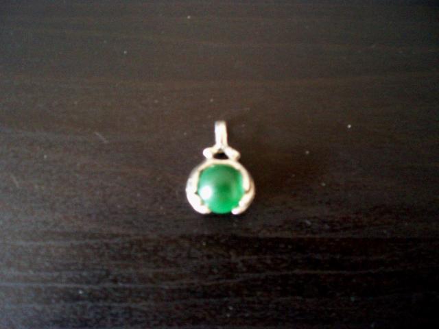 Pakabukas nedidelis, apie 2 cm skersmens, nesidabrinis, tačiau net ir po ilgo laiko - nerūdijantis; atrodo, kad žalią rutulį yra apgaubusios metalinės rankos - išties įdomiai atrodo :) Kaina 15 Lt arba sutartinė.