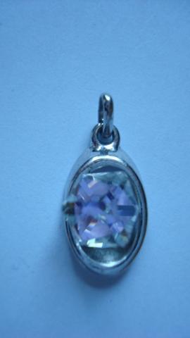 mažas elegantiškas pakabukas su rausvo stiklo akute.