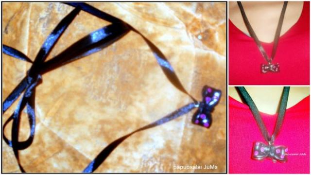 Ranku darbo pakabutis is modelino ant silkines juosteles.