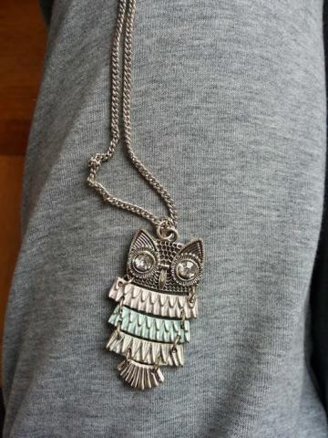 Pakabukas pelėda, labai fainas, žaismingas. grandinėlės ilgis 40cm ir dar +-7,5 nes galima segtis kai nori ant ilgiausio arba trumpiausio