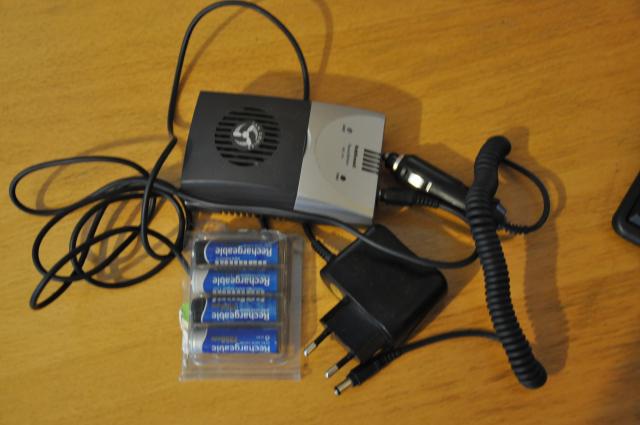 Pakrovėjas su su aušinimo ventiliatorium AA tipo baterijoms :) plius 8 pakraunamos AA baterijos ir Automobilinis kištukas, labai patogu keliaujant