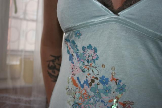 raso dydis M, bet simtaprocentinis S, siuvineta blizganciom dalelem, lengva.