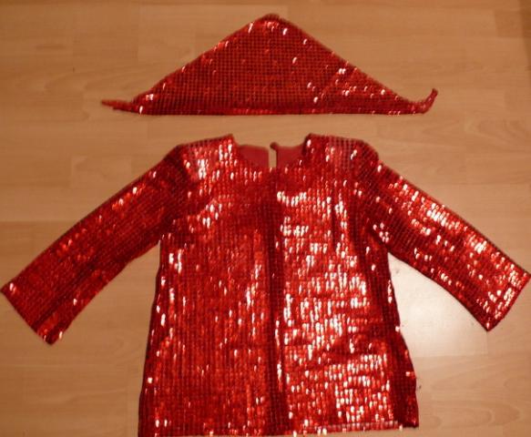 Raudona palaidinė ir skarelė.