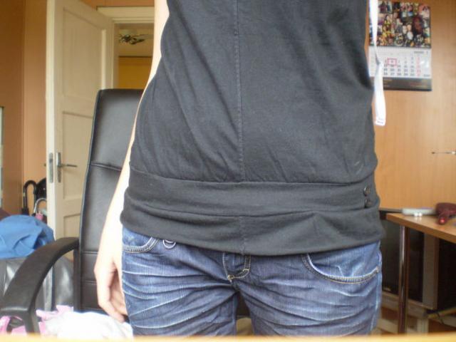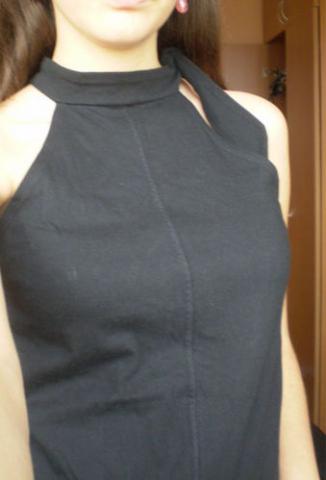 Graži juoda TOP SHOP palaidinė. Dydis 10 (t.y 38, m), tiktų ir s. Be rankovių, kaklas šone užsiriša. Apačioj apsitempia ir eina tokios "kvarbatkos" ;DD Dar dvi mielos sagutės yra. Nenunešiota.