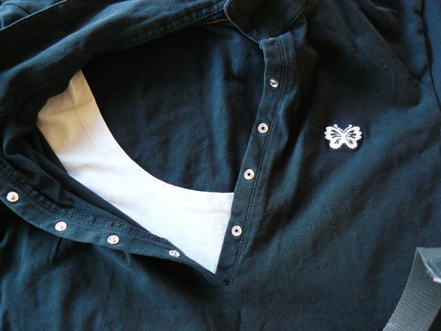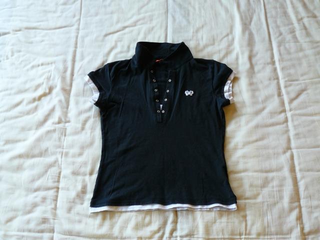 S dydis. Juoda su baltais krašteliais. Gali užsisegt iškirptė.