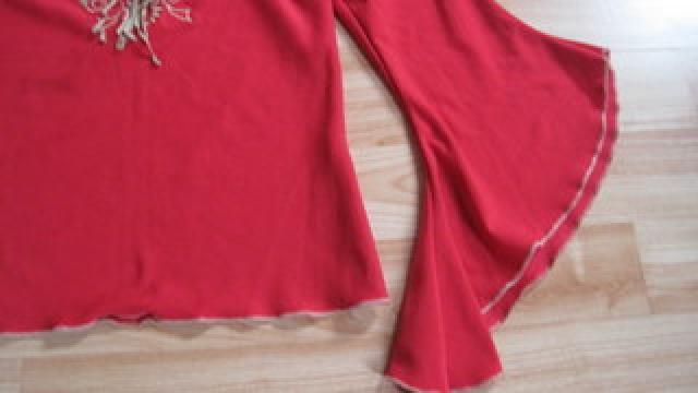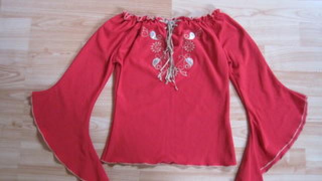 grazi palaidine mergaitei, medziaga tampoma, tad dydis irgi kinta, o siaip labiausiai nesioti tinka 9-10 metu mergaitems, zinoma, priklausomai nuo sudejimo. puosni palaidine, priglundanti prie kuno, gerai issilaikiusi (nes mazai nesiota), spalva realiai ryski raudona, nuotraukoje apsvietimas nekoks. mainau/parduodu uz 2Lt