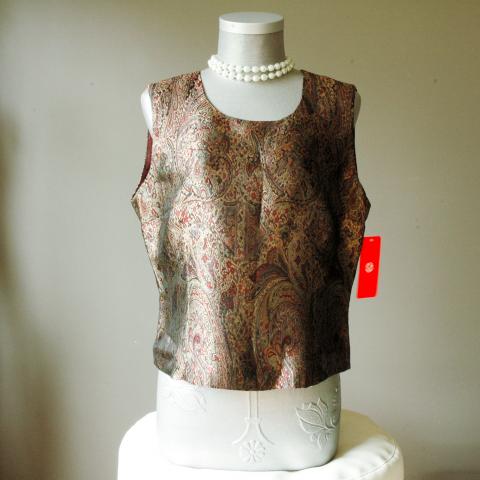 Nauja, dar su etikete "Rožės" liemenės tipo palaidinė, iš prabangaus gan storo audinio. Man deja labai per didelė, vyresniai moteriai turėtų labai tikti. Dėl dydžio - daugiau informacijos rasite 3 nuotraukoje. Pardavimui pirmenybė, bet mielai mainau ir į man patinkančius vertingus daiktus :)