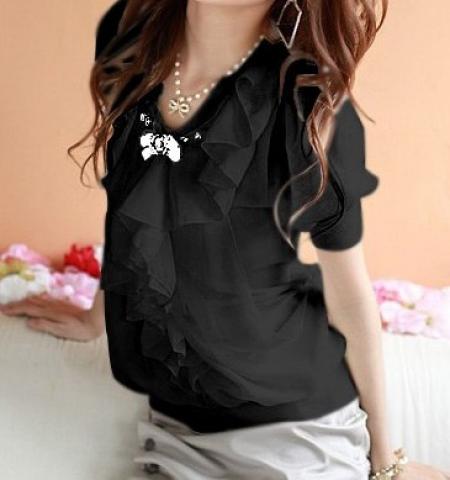 Išmatavimai: ilgis 65cm, biustas 84-88cm, pečiai 36cm, rankovės 25cm. Medžiaga: šifonas.