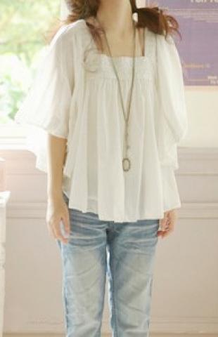 Išmatavimai: ilgis 64cm, biustas 96cm, pečiai 34cm, rankovės 33cm. Medžiaga: šifonas.
