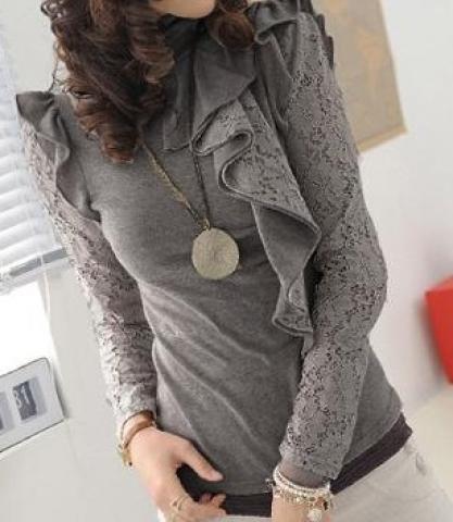 Trys spalvos. Išmatavimai: ilgis 58cm, biustas 86cm, liemuo 76cm, pečiai 38cm, rankovės 58cm. Medžiaga: medvilnė + nėriniai.