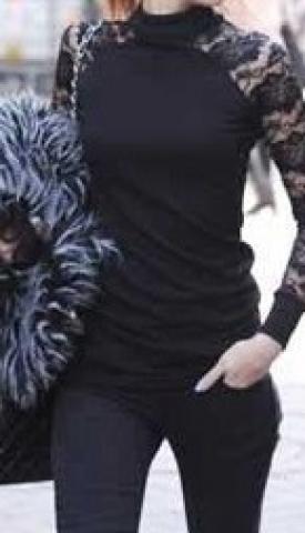 Dvi spalvos. Išmatavimai: ilgis 74cm, biustas 80cm, rankovės 63cm. Medžiaga: medvilnė + nėriniai.