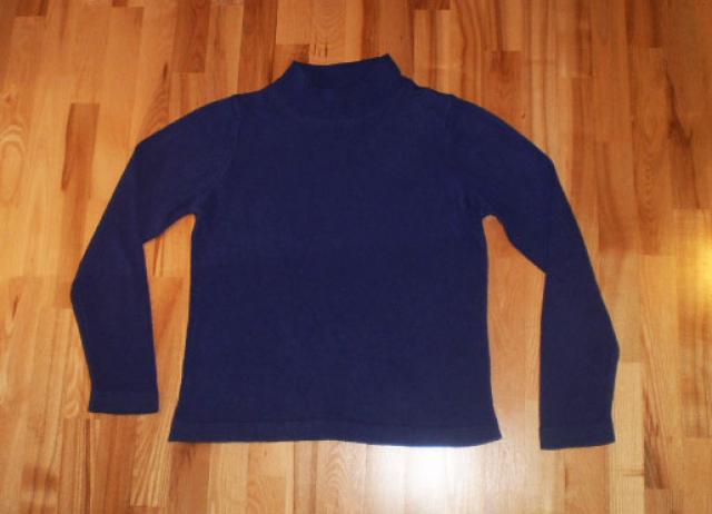 Mėlynas megztinukas. Dydis manyčiau XS/S. Etiketės nėra, todėl sunku pasakyti. Nešioju S, ir man megztinukas jau trumpas. Sudėtyje yra vilnos. Nešiotas, bet dar tinkamas nešioti kitam žmogui :) Labai mielas ir malonus prie kūno. Jei prireiktų tikslių išmatavimų - drąsiai rašykit :)