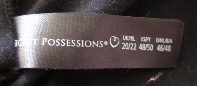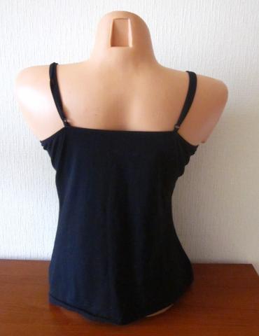 Palaidinė su petnešėlėmis, juodos spalvos, tinka L, XL, XXL dydžiams. Labai tampri. Viduje yra papildoma medžiagos dalis prie krūtinės, liemenėlė nebūtina. Išmatavimai (ramybės būsenoje): Ilgis nugaroje 41 cm, priekyje 46 cm. Krūtinės apimtis 44x2 cm, tempiasi iki 60x2 cm.