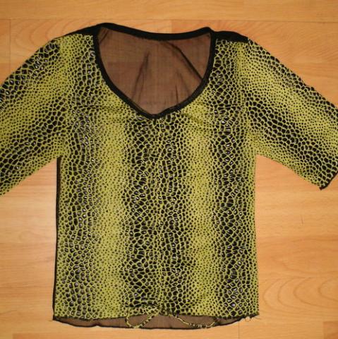 Ne karto nedeveta nauja, gana ekstavagantiška palaidinė su tinkline nugara, priekis suitraukia, S-dydis.