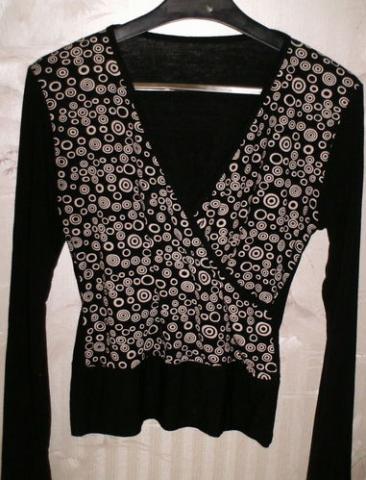 Trikotažinė palaidinė su V-formos iškirpte, ilgomis rankovėmis.