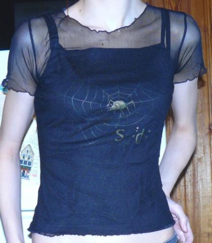 XS-S dydis. Sintetinė. Kind of gothic :D dviejų dalių, abi atsiskiria, t.y. permatoma maikutė ir paprasta ant petnešėlių su voratinkliu