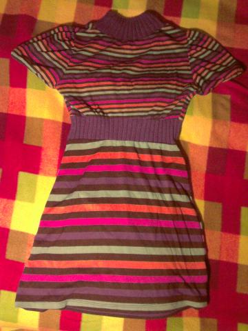 Violetine su ivairios spalvos juostelemis, trumpomis rankovemis, plonos medziagos.