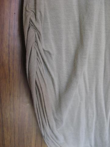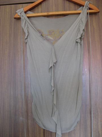 Labai lengvos medžiagėlės. Šonuose medžiaga suraukta, nugaroje turi tolias kaip ir kvarbatkas. Visur medžiaga (rankoves, kaklo iškirpte ir pn) yra tiesiog lyg nukirpta/nuplėšta, neapsiūta.