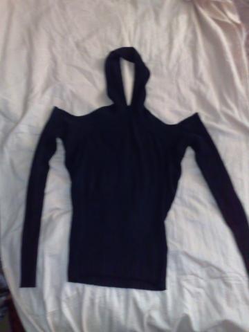Juodos spalvos palaidinė nuogais pečiais. Ta kilputė užsideda ant kaklo. Labai graziai atrodo. Rašo, kad dydis yra L, bet tinkama tik M dydžio sudėjimui.