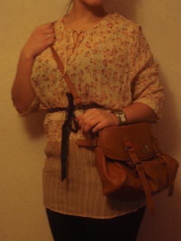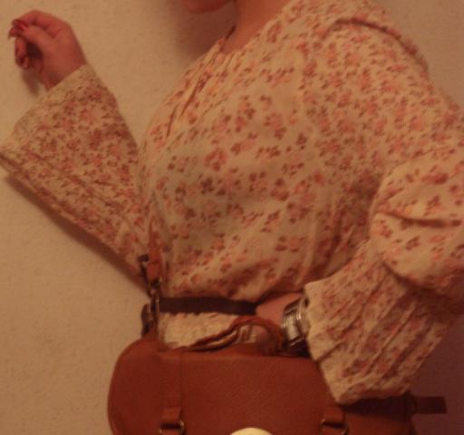 Pūstomis rankovytėmis daili gėlėta bliuskutė.