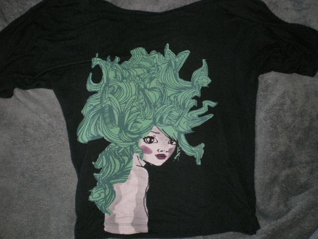 uzsideta tik pora kartu. neliksit nepastebeta nes visi labai atkreipia demesi i zalius plaukus:DD pati nesioju s dydi ir si maike man apdribus, bet graziai:) be defektu!!!