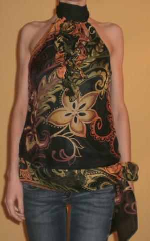 Vasariška bliuskutė. Užsiriša per kakla ir apačioje galima susirišti bantą. Šilkinė. Dydis S