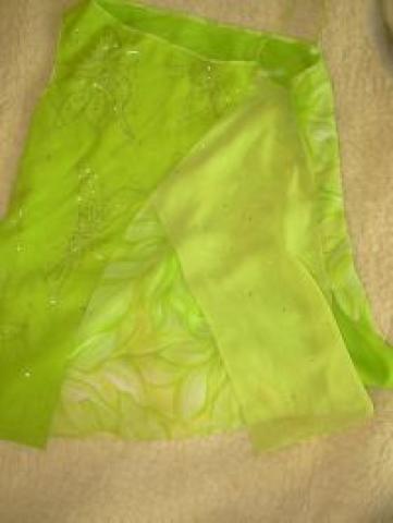 Tai žalia palaidinė - topas. Vėjui pučiant plaikstosi klostės.