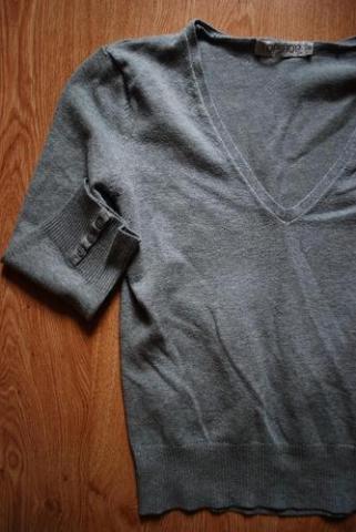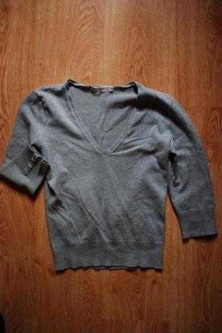 3/4 rankovės. pilka spalva. rankoves su keliom sagutėm(del grozio). dydis S
