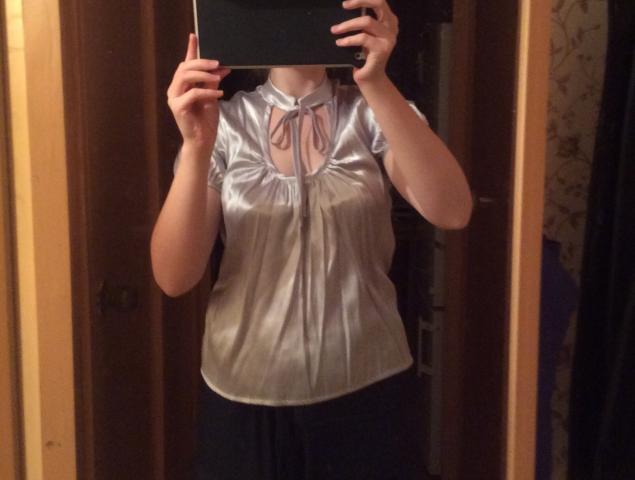 Švelnios tarsi šilkas sidabrinės medžiagos palaidinė. M dydžio. Puikiai išlaikyta. Su labai įdomia ir gražia iškirpte, kuri susiriša raišteliais