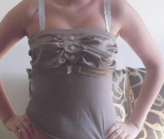 Nauja. Be rankovių, trumputė ir plona, itin gražiai atrodytų merginai pas kurią nedidelė krūtinė, nes vizualiai padidina :) dydis M/L