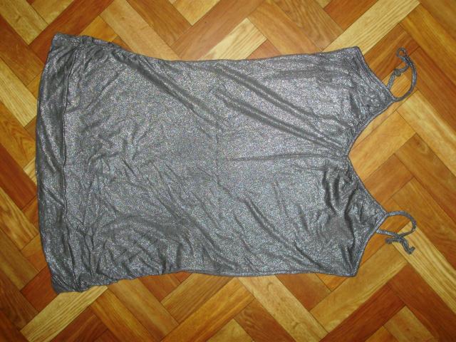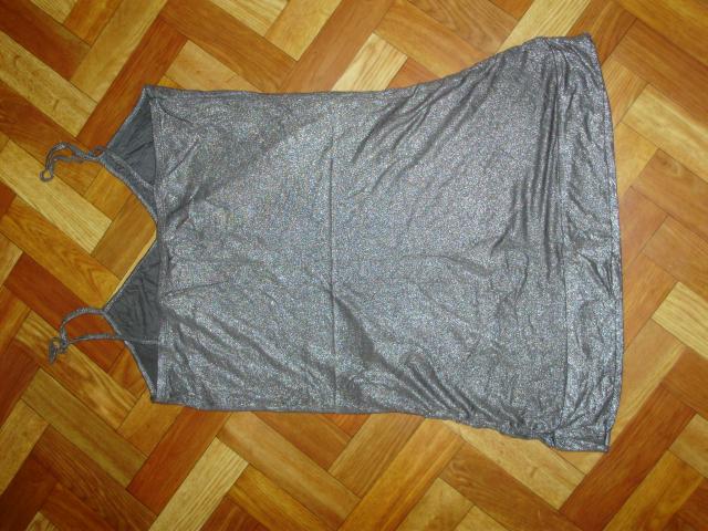 Plona palaidinukė, galima kaip trumpa suknelė. Pilkos blizgios spalvos