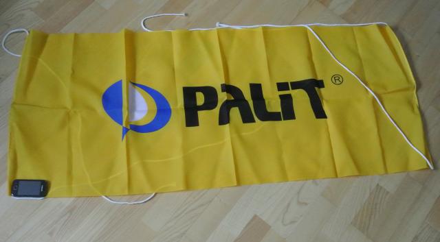 Nauja originali vaizdo plokščių gamintojos "PALIT" vėliava. Medžiaginė su šniūreliais iš kampų.