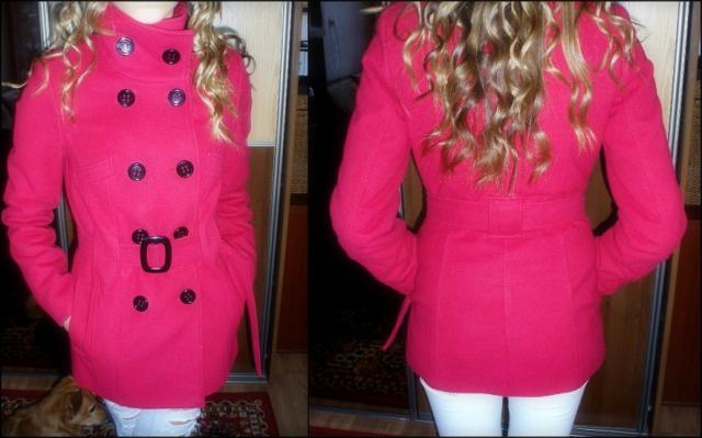 Elegantiškas, šiltas, raudonos spalvos paltukas. 34 dydžio.
