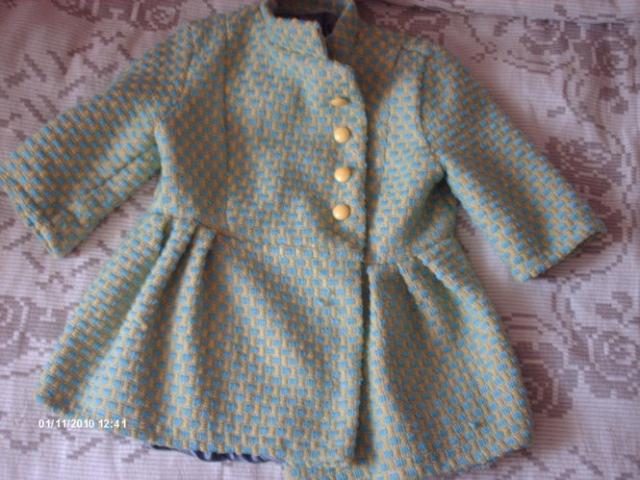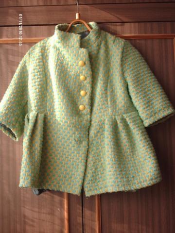 Žaliai mėlynas trumpas paltukas, šiltom pavasario dienom. Dydis maždaug s-m