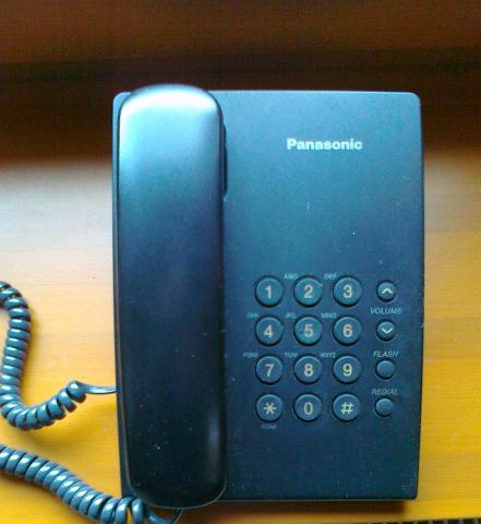 Panasonic KX-TS500FXB laidinis telefonas, veikia gerai. keiciamas skambejimo garsumas, numerio rinkimas: toninis/ impulsinis (pulse ir tone). Yra renkamo numerio pakartojimas.