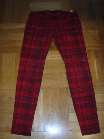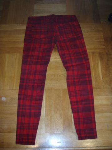 Raudonos spalvos,languotos-pankiškos kelnės iš ZARA,42dydžio,didelės,tuomet truputį nukaręs klynas būna.siaurėjančios,patogios